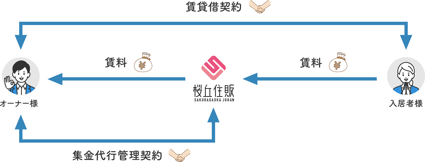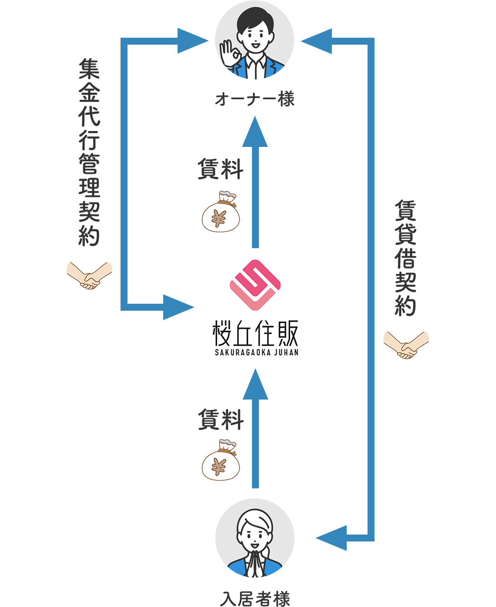 集金代行契約管理委託契約とサブリース契約のいいとこ取りをした、弊社ならではの管理システムです。